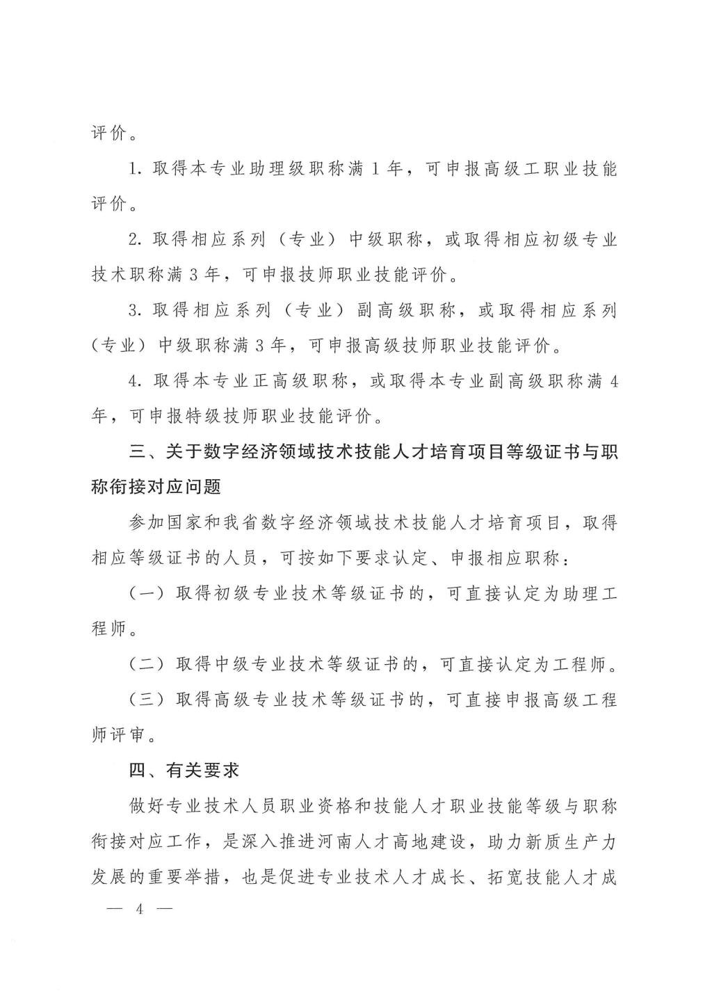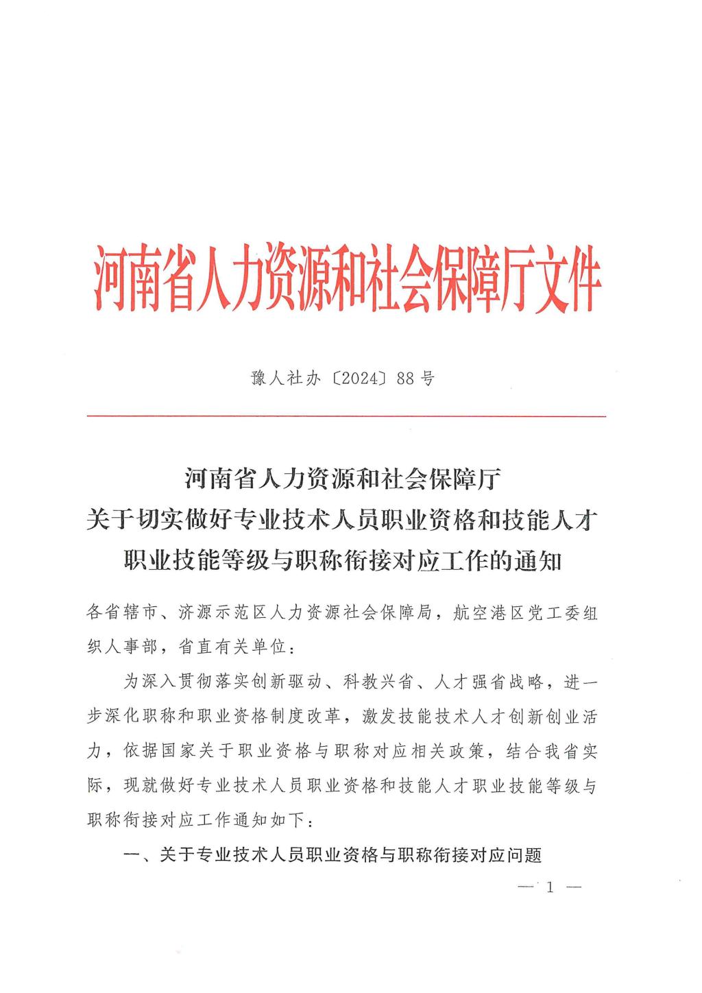 ☆豫人社办〔2024〕88号——关于切实做好专业技术人员职业资格和技能人才职业技能等级与职称衔接对应工作的通知20241028(2).pdf