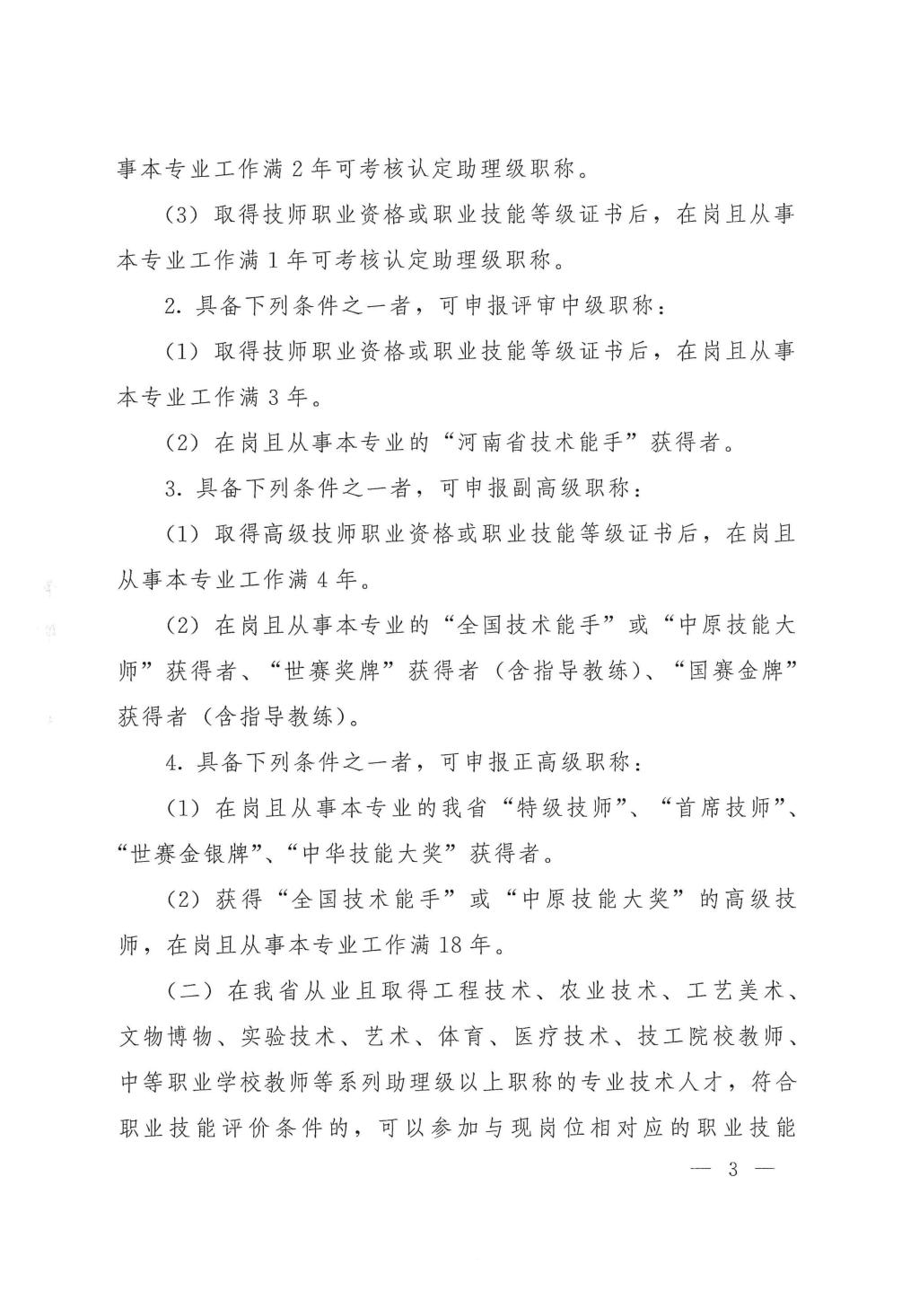 河南省人力资源和社会保障厅关于切实做好专业技术人员职业资格和技能人才职业技能等级与职称衔接对应工作的通知