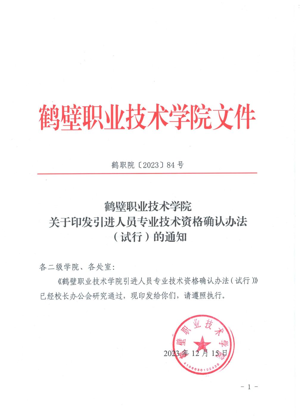 ★鹤职院〔2023〕84号——关于印发引进人员专业技术资格确认办法(试行)的通知20231215(1).pdf