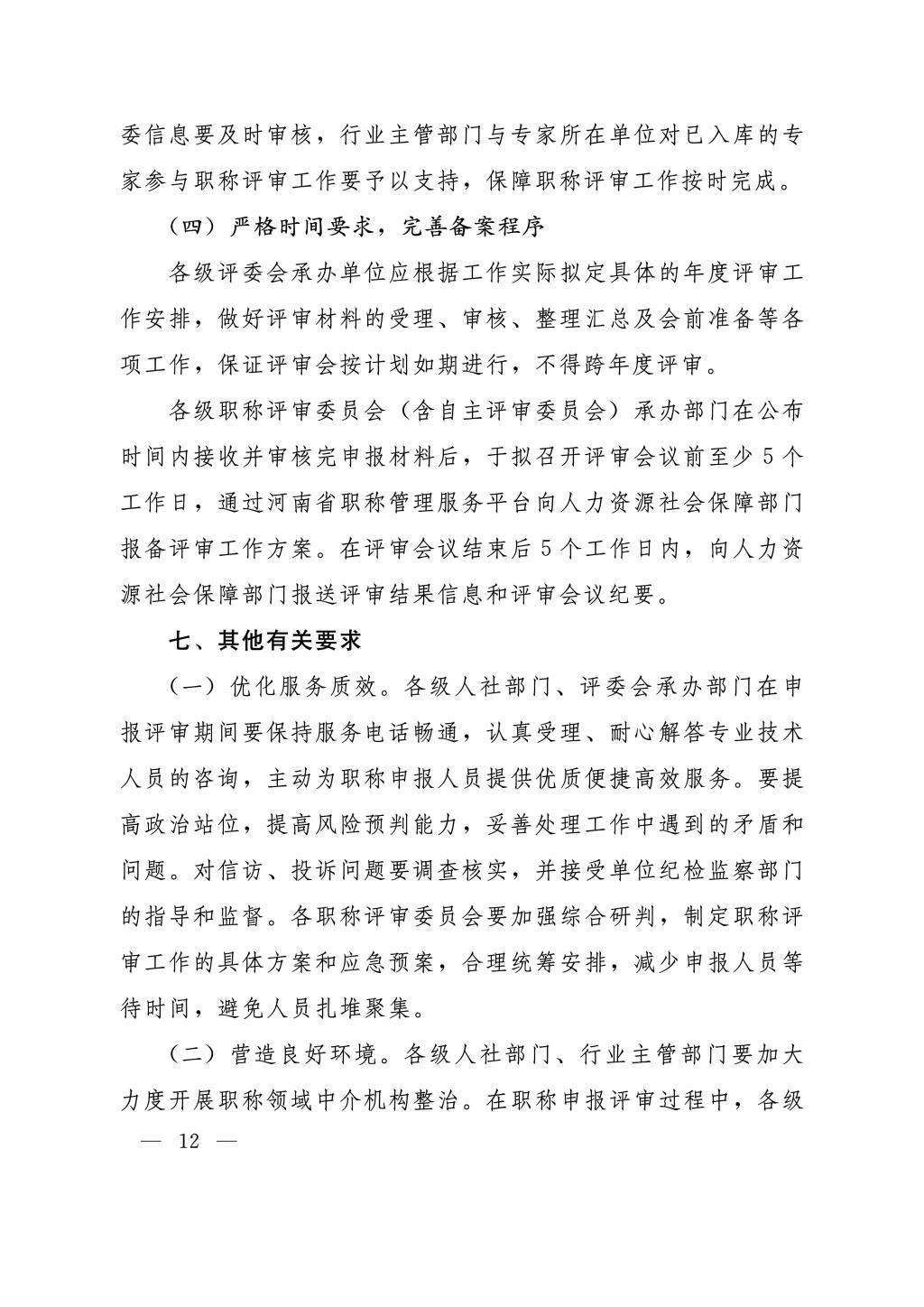 河南省人力资源和社会保障厅关于2024年度全省职称评审工作有关事项的通知